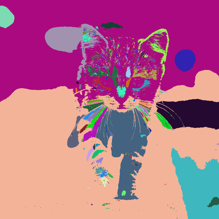 The output image shows each connected component in a unique random color.